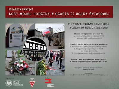09/03/2021KonkursOgólnopolski konkurs „Sztafeta Pamięci – losy mojej rodziny w czasie II wojny światowej”. Nadsyłanie prac do 30 kwietnia 2021