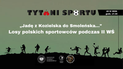 15/04/2024ZapowiedźSpotkanie „»Jadę z Kozielska do Smoleńska …«. Losy polskich sportowców podczas II wojny światowej” z cyklu „Tytani sportu” – Warszawa, 15 kwietnia 2024