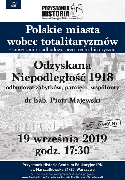 19/09/2019ZapowiedźCykl spotkań „Polskie miasta wobec totalitaryzmów – zniszczenie i odbudowa przestrzeni historycznej” – Warszawa, 19 września 2019