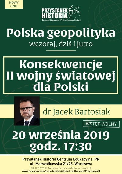20/09/2019ZapowiedźZ cyklu „Polska geopolityka wczoraj, dziś i jutro” rozmowa o skutkach II wojny światowej dla Polski – Warszawa, 20 września 2019