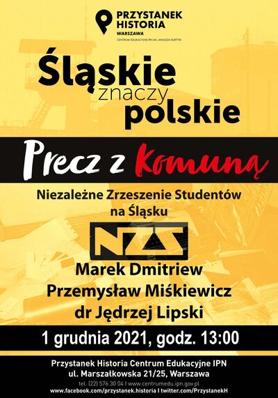 01/12/2021RetransmisjaDyskusja online „Precz z komuną. Niezależne Zrzeszenie Studentów na Śląsku” z cyklu „Śląskie znaczy polskie” – 1 grudnia 2021