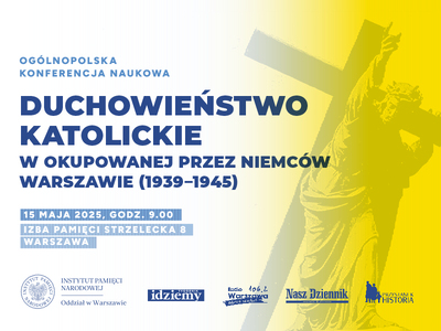 15/05/2025Konferencja naukowaOgólnopolska konferencja naukowa „Duchowieństwo katolickie w okupowanej przez Niemców Warszawie (1939–1945)” – Warszawa, 15 maja 2025