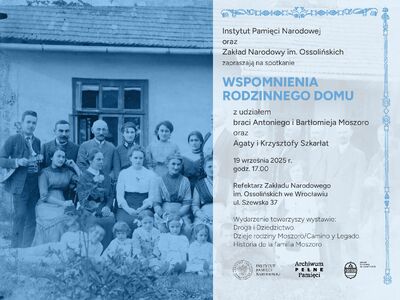 19/09/2025Spotkanie„Wspomnienia rodzinnego domu” – spotkanie towarzyszące wystawie „Droga dziedzictwo. Dzieje rodziny Moszoro / Camino y Legado. Historia de la familia Moszoro” – Wrocław, 19 września 2025
