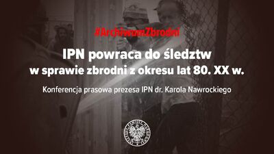 14/08/2022Zapowiedź transmisjiIPN powraca do śledztw w sprawie zbrodni z okresu lat 80. XX wieku – konferencja prasowa prezesa IPN