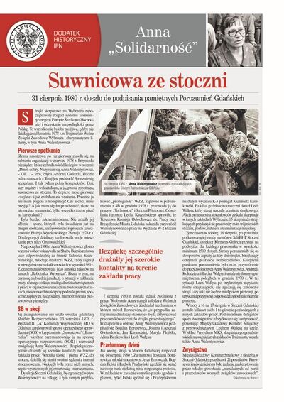 W „Naszym Dzienniku” z 30 sierpnia 2019 ukazał się dodatek historyczny Instytutu Pamięci Narodowej poświęcony postaci Anny Walentynowicz.