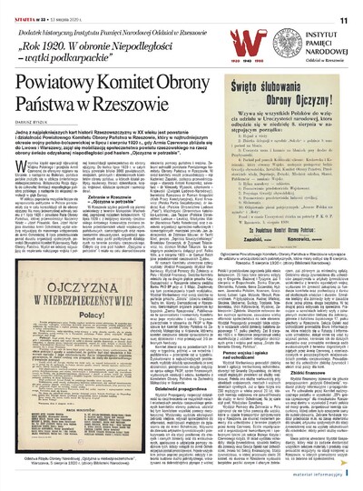 „Rok 1920. W obronie Niepodległości – wątki podkarpackie” – dodatek prasowy IPN Rzeszów w „Życiu Podkarpackim”, „Obserwatorze Lokalnym” i „Sztafecie”