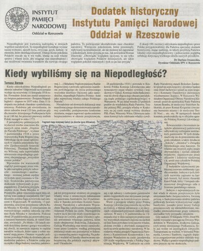 Dodatek historyczny Instytutu Pamięci Narodowej Oddział w Rzeszowie – „Nowiny”, 8 listopada 2018