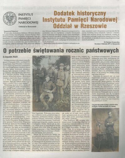 Dodatek Oddziału IPN w Rzeszowie o działaniach IPN na 100-lecie niepodległości