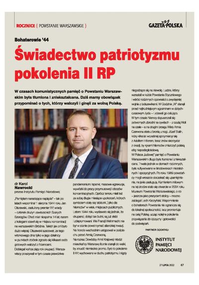 27 lipca 2022 ukazał się dodatek historyczny IPN poświęcony rocznicy wybuchu Powstania Warszawskiego i akcji „Burza”