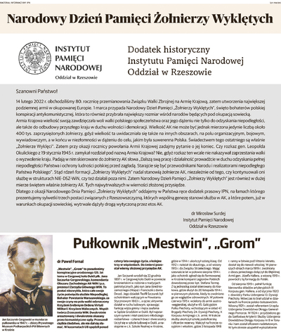 Dodatek został przygotowany przez historyków Instytutu Pamięci Narodowej – Oddział w Rzeszowie z okazji Narodowego Dnia Pamięci Żołnierzy Wyklętych. Ukazał się 28 lutego i 1 marca 2022 r.