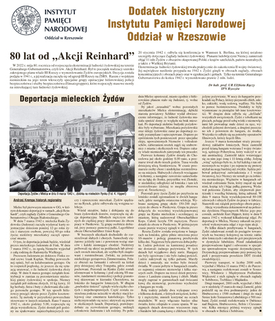 Dodatek historyczny Oddziału IPN w Rzeszowie „80 lat od »Akcji Reinhard«”