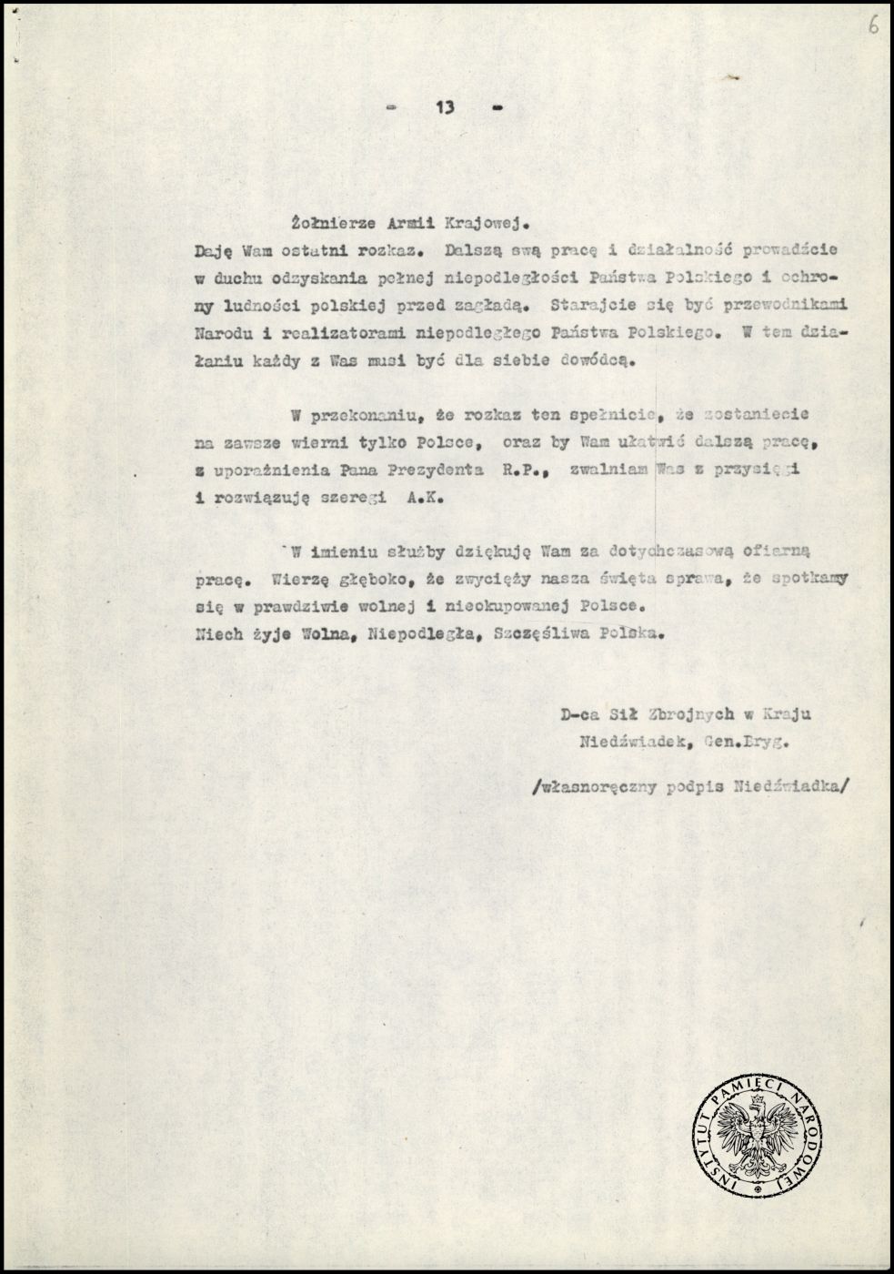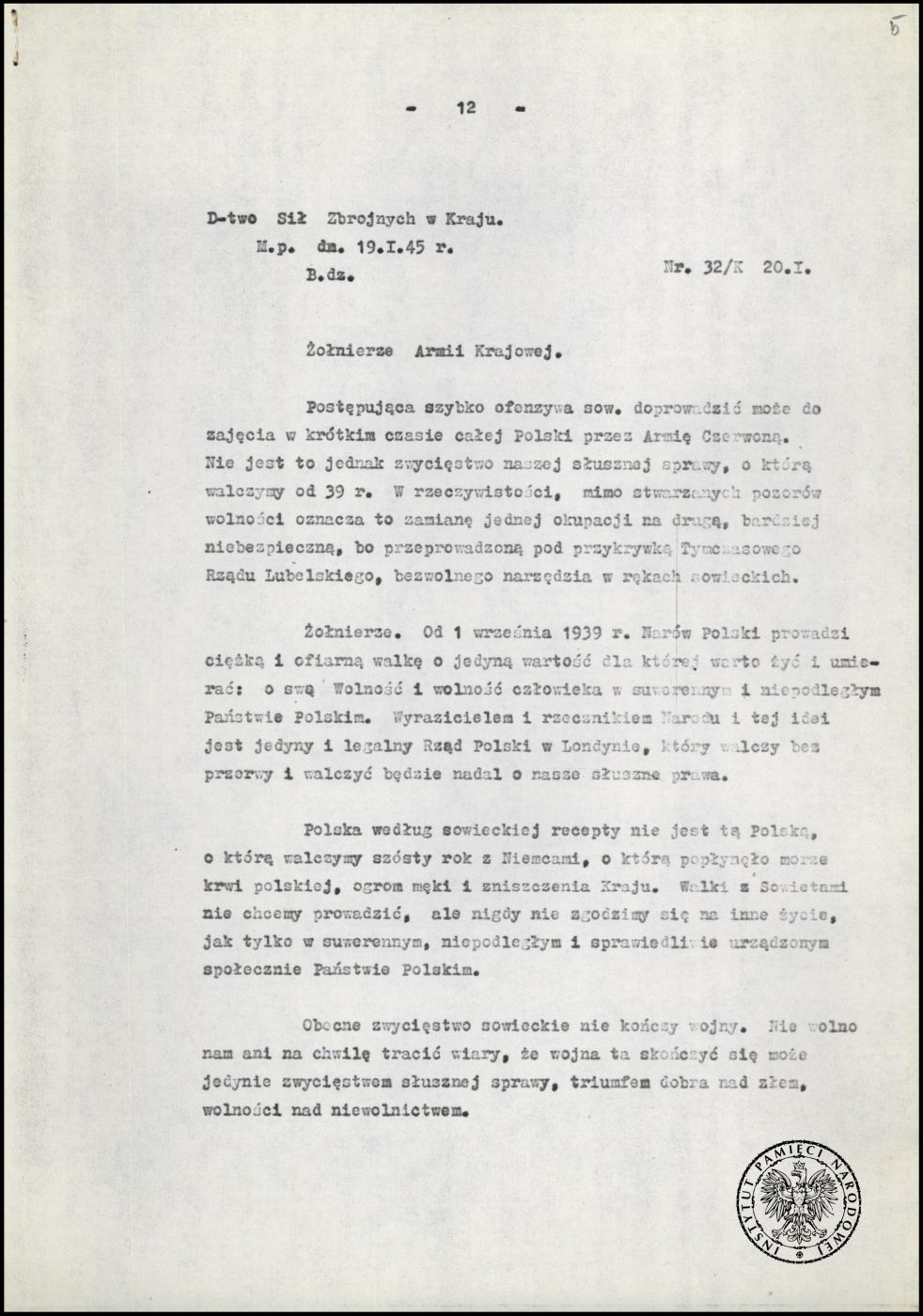 19 stycznia przypadają dwie ważne rocznice w historii Polski. Pierwsza dotyczy rozwiązania Armii Krajowej z rozkazu gen. Leopolda Okulickiego w 1945 r. Druga to wejście w życie ustawy uchwalonej przez sejm 18 grudnia 1998 r., o Instytucie Pamięci Narodowej – Komisji Ścigania Zbrodni przeciwko Narodowi Polskiemu w 1999 r.