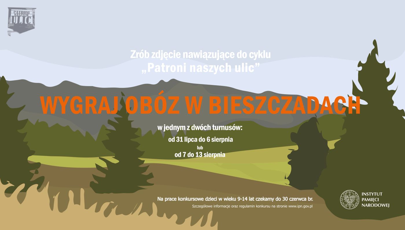 Wybierz jednego z bohaterów serii „Patroni naszych ulic” i zrób zdjęcia miejsc, obiektów, pamiątek, przedmiotów, budowli, pomników powiązanych z daną osobą. Weź udział w konkursie fotograficznym i wygraj wakacyjny obóz w Bieszczadach!