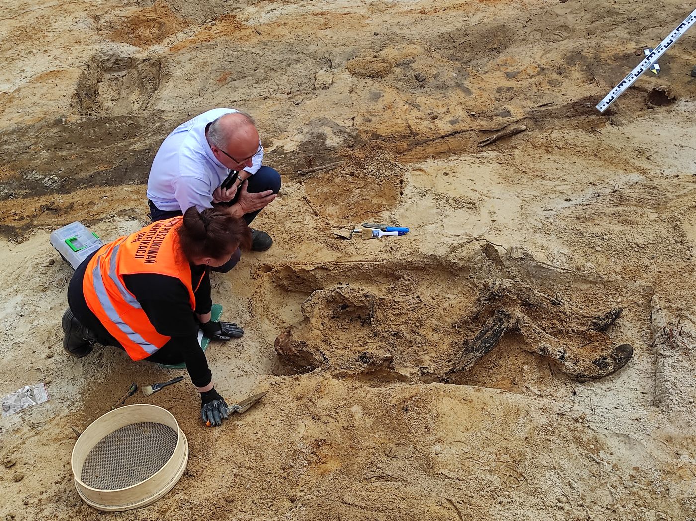 Podczas dotychczasowych dwóch tygodni prac odnaleziono kilka jam grobowych, w których natrafiono na szczątki należące do 9 osób. Znajdowały się przy nich liczne przedmioty osobiste – obuwie, pozostałości ubrań, grzebień, szczoteczka do zębów, protezy zębowe, okulary, dewocjonalia oraz guziki – w tym od wojskowego płaszcza, co pozwala sądzić, że wśród odnalezionych szczątków jest żołnierz.