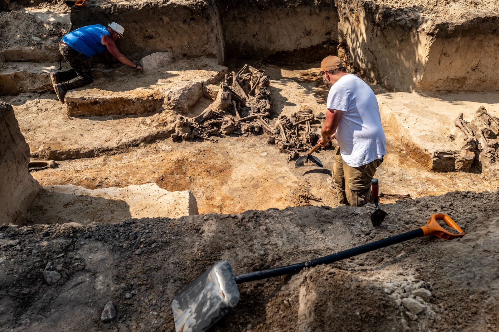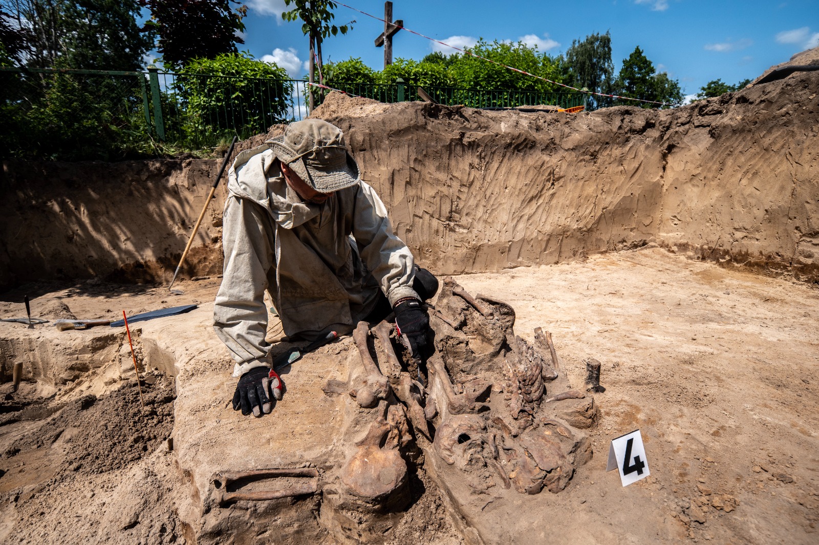 W wyniku prac odnaleziono i ekshumowano 23 szkielety w różnym stopniu kompletności. Szczątki kostne należały głównie do młodych mężczyzn (do 30–35 r.ż.), złożone w większości na plecach, w pozycji anatomicznej. Na wszystkich zachowanych czaszkach odnotowano urazy – głównie pod postacią otworów postrzałowych w tylną części czaszki (potylica, w jednym przypadku oddano trzy strzały) czy też ostrych przełomów, wgniecenia (jeden przypadek), świadczących o urazie perimortem.