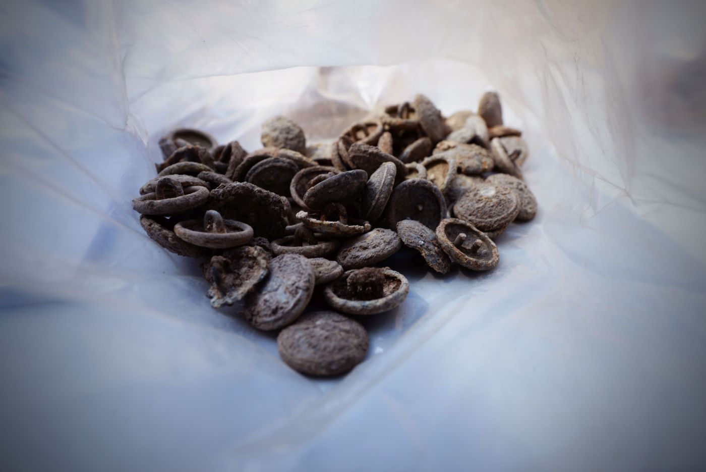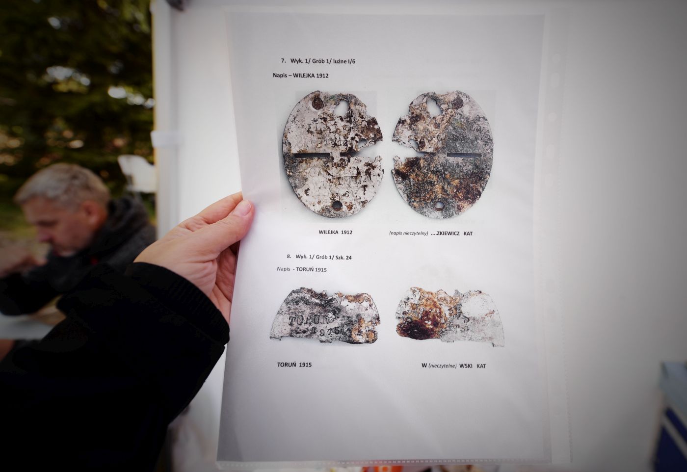 Przy szczątkach znaleziono liczne elementy oprzyrządowania i umundurowania wojskowego (m.in. guziki wojskowe, pasy, maski przeciwgazowe), a także przedmioty osobiste (medaliki, różańce, polskie monety). Szczególnie cennym znaleziskiem jest 11 nieśmiertelników z danymi pozwalającymi na ustalenie tożsamości żołnierzy. Umożliwi to podjęcie badań genealogicznych i pobranie materiału porównawczego do badań genetycznych od krewnych poległych żołnierzy.