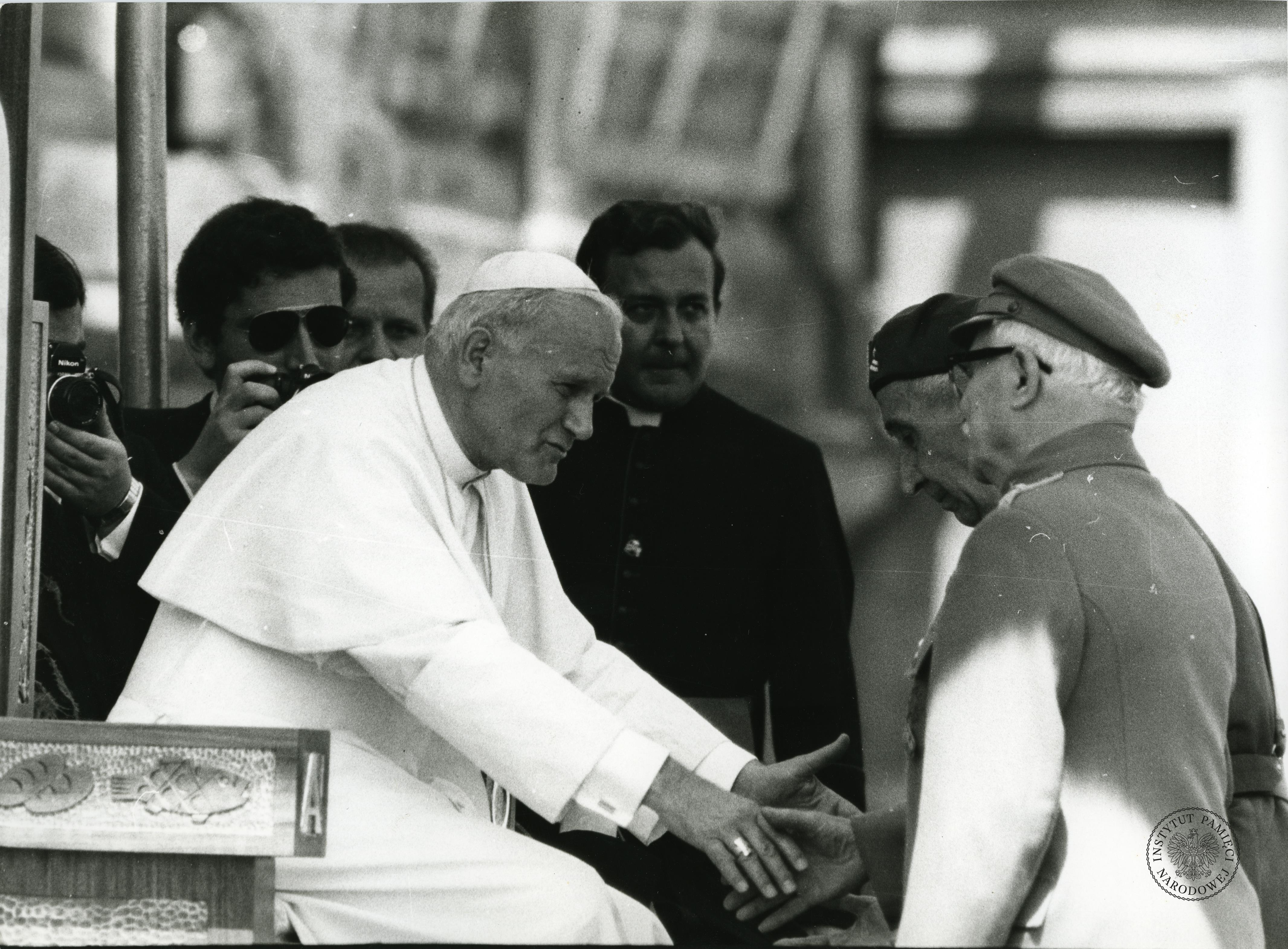 Pierwsza pielgrzymka Jana Pawła II do Ojczyzny. Jan Paweł II wita się z kombatantami, z zasobu AIPN, sygn. IPNPo-7-7-1-35-1 -