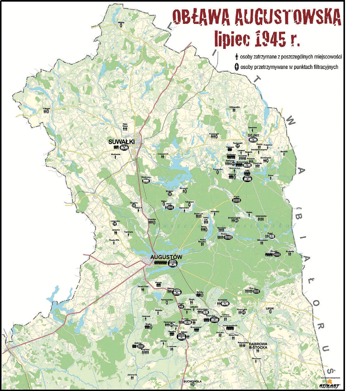 Funkcję pomocniczą pełnili żołnierze Ludowego Wojska Polskiego i kierowani przez Sowietów funkcjonariusze miejscowego Urzędu Bezpieczeństwa. Okrążono olbrzymi teren w Polsce i na Litwie od krańca Puszczy Augustowskiej na północy, od Niemna na wschodzie, Kanału Augustowskiego na zachodzie po Biebrzę, Wołkuszankę i Czarną Hańczę na południu. Obława rozpoczęła się między 10 a 12 lipca 1945 r. Koniec jej umieszcza się między 19 a 28 lipca.