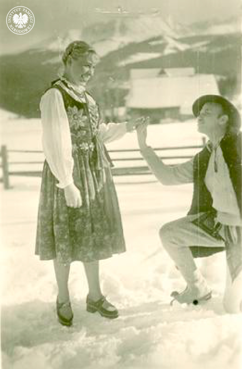 Lidia Lwow ps. „Ewa – Lala” i mjr Zygmunt Szendzielarz ps. „Łupaszka” pozują do zdjęcia w strojach góralskich (AIPN)