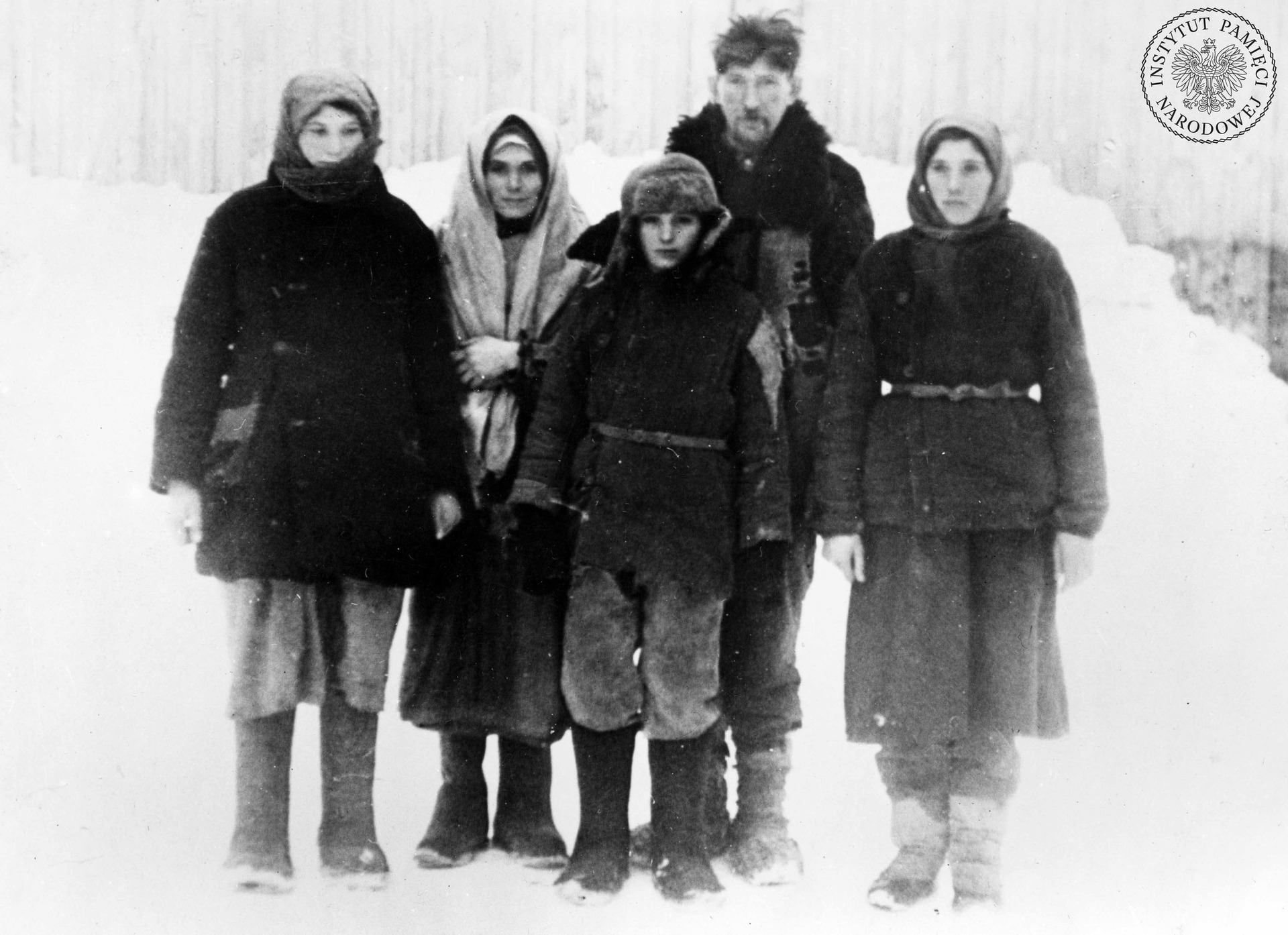 Pięcioosobowa rodzina polska, deportowana przez władze sowieckie, po przybyciu do miejsca formowania jednostek Armii Polskiej pod dowództwem gen. Władysława Andersa w 1941 lub 1942 r. Reprodukcja rozpowszechniana przez komórki propagandy rządu RP i Polskich Sił Zbrojnych w Wielkiej Brytanii (fot. z zasobu IPN)