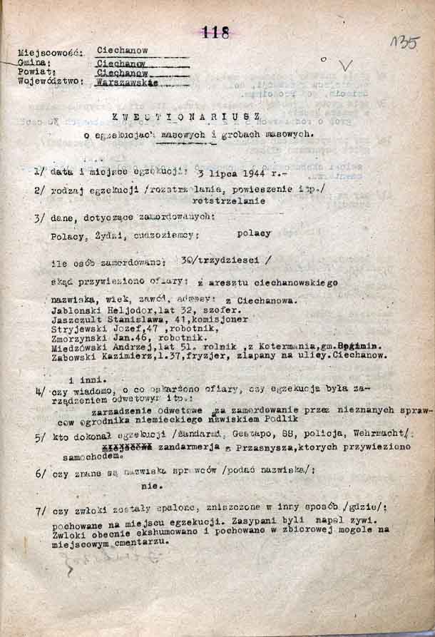 Wśród osób rozstrzelanych 3 lipca znaleźli się m.in. mieszkańcy wsi Wólka Drążdżewska w pow. makowskim, zatrzymani 29 czerwca: Teofil Dudek, Bolesław Zdunek, Stefan Zalewski, Czesław Dąbrowski oraz Wiktor Mikulak. Byli oni zamieszani w sprawę prowadzoną przez Gestapo przeciwko sołtysowi ww. wsi Władysławowi Parzychowi i jego synowi Antoniemu. Zarzucono im, że za ich namową sołtys nie zgłosił na posterunku żandarmerii faktu pojawienia się we wsi dwóch obcych mężczyzn. Z dokumentacji sprawy wynika, że ich śmierć nastąpiła w związku z akcją odwetową za zabicie Podlicha.