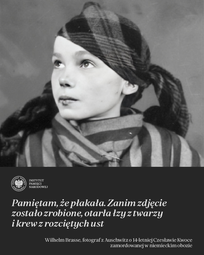 – Pamiętam, że płakała. Zanim zdjęcie zostało zrobione, otarła łzy z twarzy i krew z rozciętych ust – tak Wilhelm Brasse wspominał spotkanie z 14-letnią Polką, Czesławą Kwoką, zamordowaną później przez Niemców w Auschwitz. Brasse też był więźniem, jednak – z uwagi na pochodzenie (jego ojciec był Austriakiem) oraz fakt, że przed wojną był fotografem – wykorzystywano go do robienia zdjęć ofiarom niemieckiej fabryki śmierci. I choć przeżył obóz, po latach przyznawał: „przeklinałem Boga, przeklinałem matkę..., że mnie urodziła”.