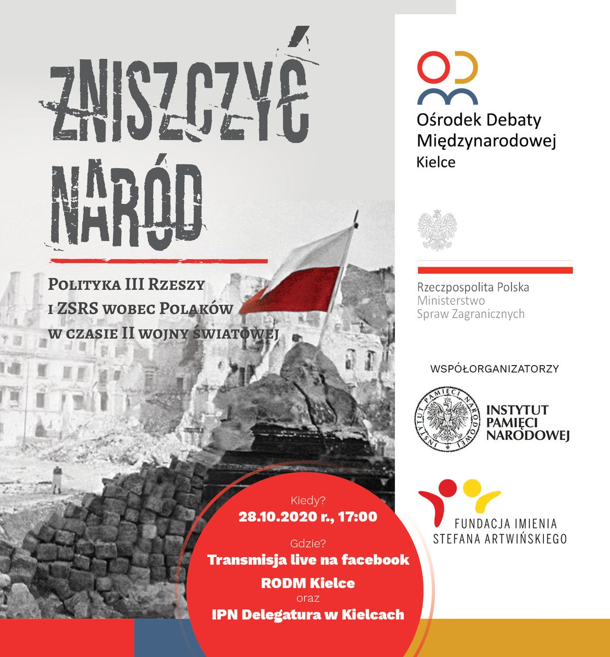 Delegatura IPN w Kielcach i Regionalny Ośrodek Debaty Międzynarodowej w Kielcach zorganizowały 28 października 2020 r. konferencję edukacyjną on-line pt. „Zniszczyć naród: polityka III Rzeszy i ZSRS wobec Polaków w czasie II wojny światowej”.