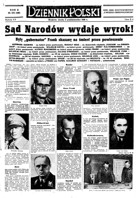 „Dziś, dwudziestego listopada roku 1945, w Norymberdze, niegdyś cytadeli faszyzmu stają przed sądem ci, którzy nie tylko pożar potworny wzniecili, ale przez lata podtrzymywali palenisko rzucaniem coraz nowych głowni okrucieństw i bestialstw, nieznanych w dziejach świata” – tak 75 lat temu „Dziennik Polski” informował o rozpoczęciu procesu czołowych funkcjonariuszy III Rzeszy.