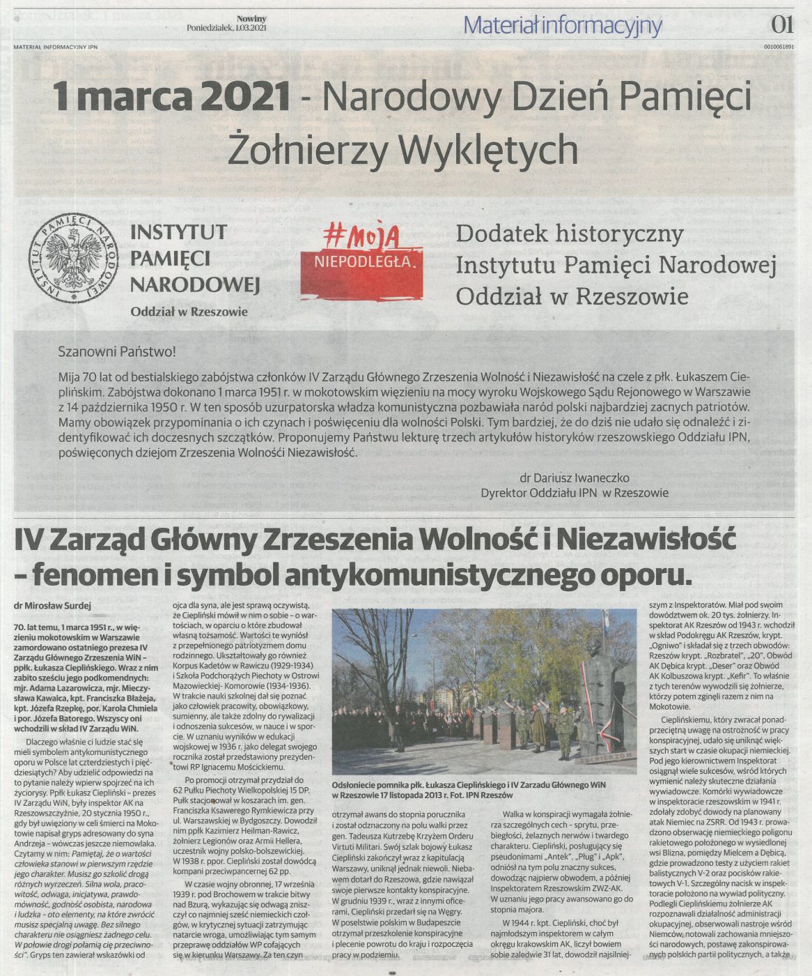 Dodatek prasowy IPN – Narodowy Dzień Pamięci Żołnierzy Wyklętych