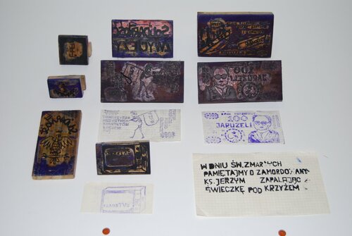 Pierwsze ulotki wydrukowane w 1984 r. były związane ze śmiercią księdza Jerzego Popiełuszki. Chłopcy przygotowali też stempel z wizerunkiem orła w koronie i napisem „Solidarność” oraz ulotkę „Solidarność zwycięży”. Powstały również wzory bardziej skomplikowane graficznie np. wykonana z okazji X Zjazdu PZPR ulotka przedstawiająca delegatów, tj. diabła z widłami, świnię podpisaną Jan Rem oraz „kościotrupa” niosącego sztandar PZPR. Pieczątki wykorzystywane były wielokrotnie.