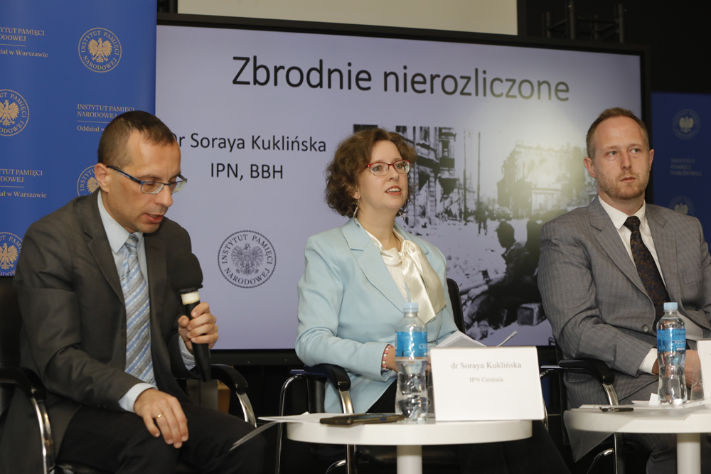 Prokuratorzy IPN, dr Marcin Gołębiewicz, Paweł Wierzchołowski i Mariusz Rębacz, zaprezentowali przykłady postępowań karnych przeciwko sprawcom niemieckich zbrodni podczas powstania oraz omawiali działania prokuratury i sądów dotyczące tych wydarzeń.