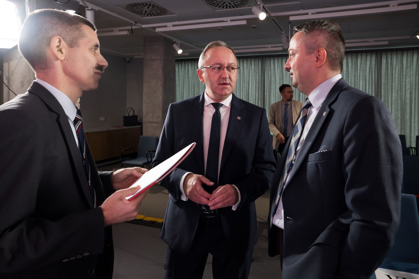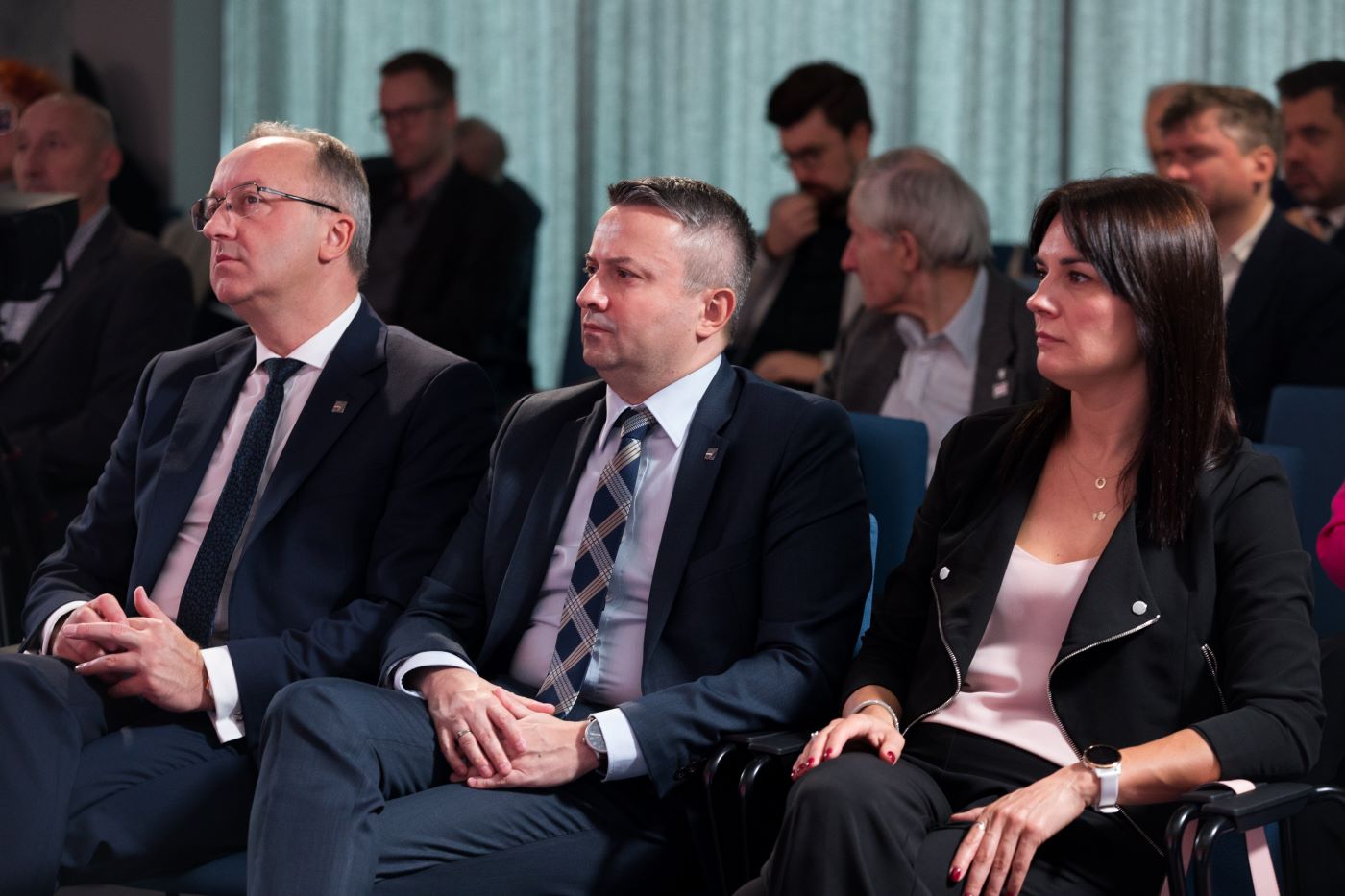 Międzynarodowa konferencja naukowa „Communist Parties in the Soviet Bloc in 1985–1989. Fall of the system” – Warsaw, 9–10 October 2024. Na zdj. od lewej zastępca prezesa IPN dr hab. Karol Polejowski, dyrektor Biura Badań Historycznych dr Sebastian Pilarski, dyrektor Wydawnictwa IPN Karolina Imianowska. Fot. Mikołaj Bujak (IPN)