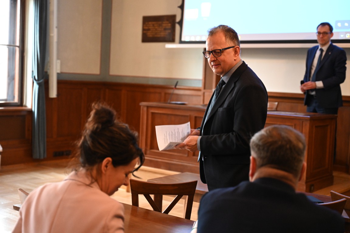 Uczestników obrad przywitali dr hab. Filip Musiał, dyrektor krakowskiego oddziału IPN, dr hab. Sławomir Sprawski, prodziekan ds. ogólnych Wydziału Historii UJ, dr hab. Janusz Mierzwa, dyrektor Instytutu Historii UJ oraz dr hab. Piotr Bajor, dziekan Wydziału Studiów Międzynarodowych i Politycznych UJ.
