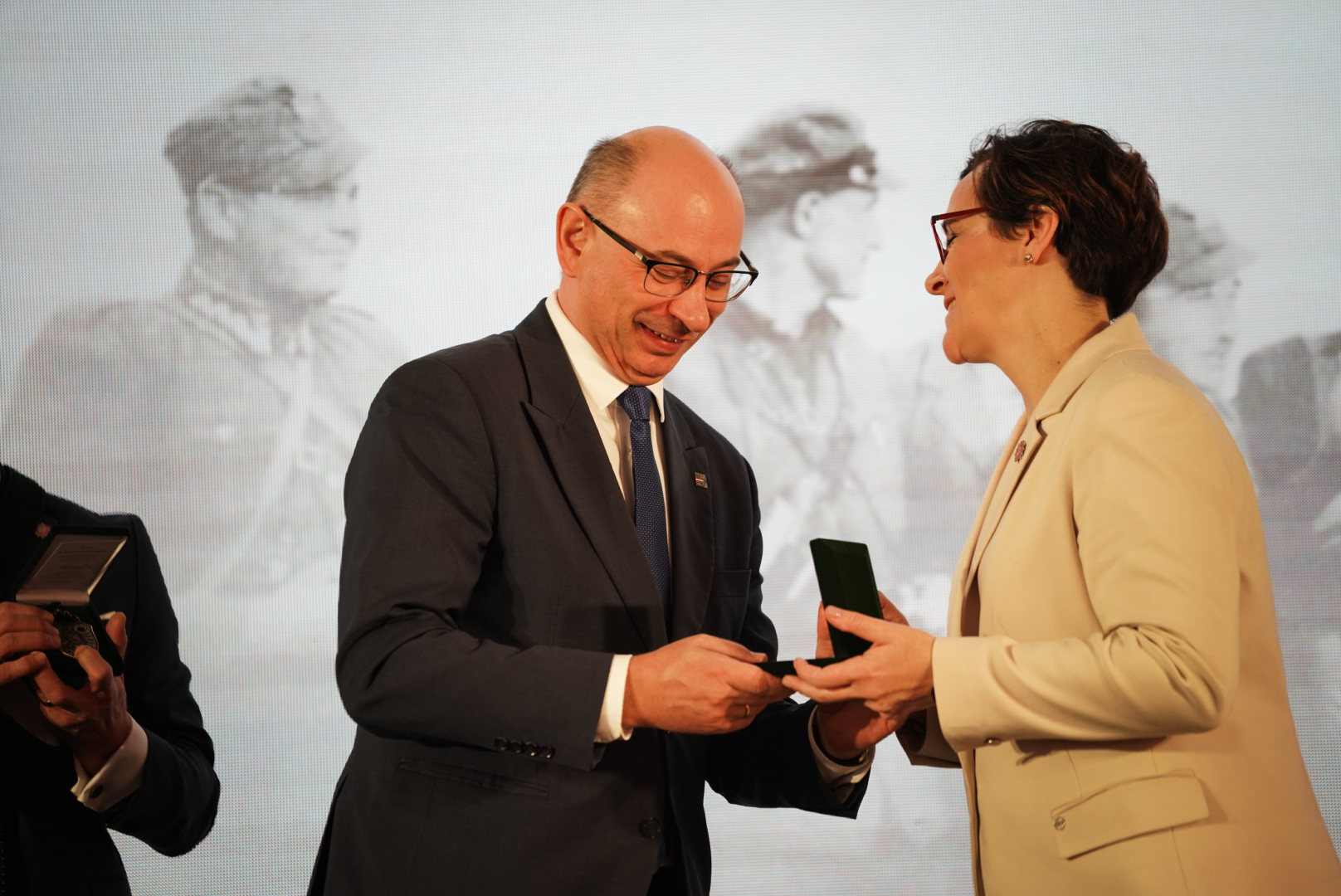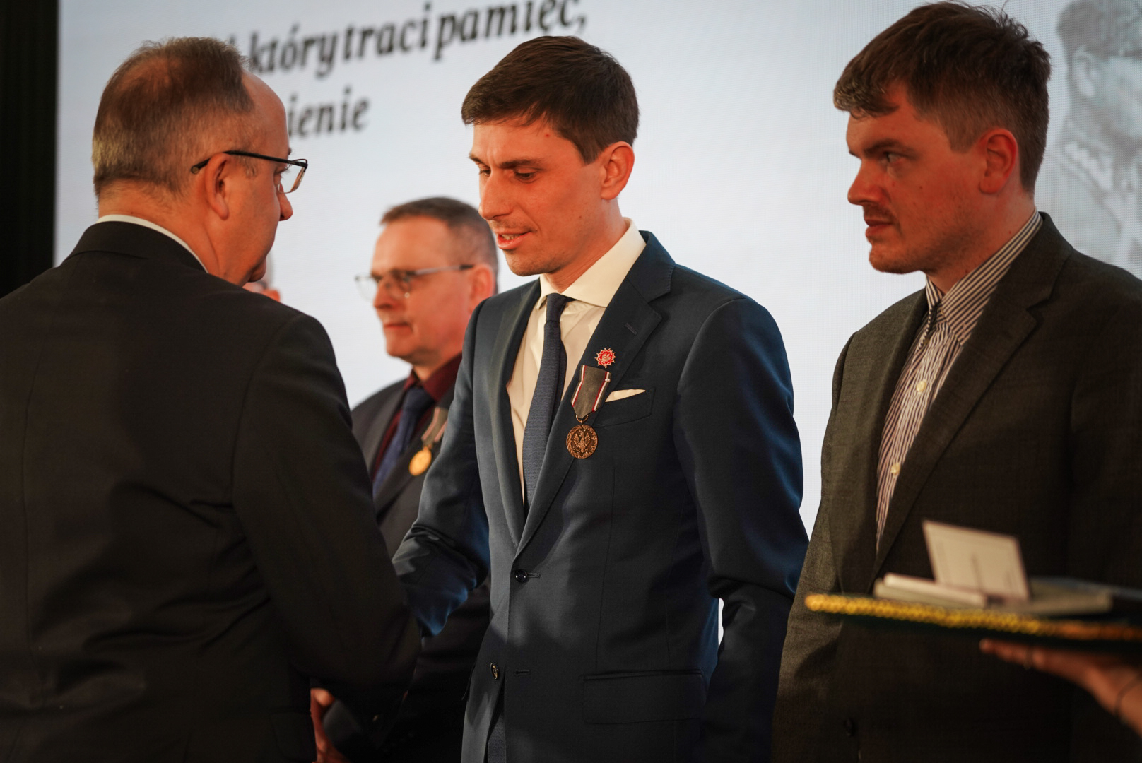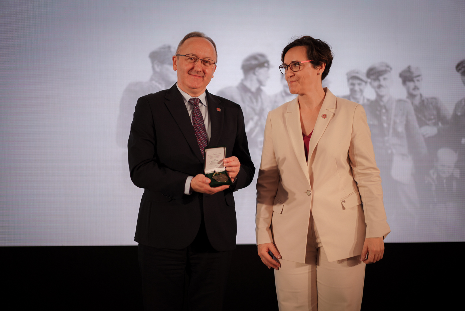 Zastępcy prezesa IPN – dr hab. Karol Polejowski, dr Mateusz Szpytma oraz dr hab. Krzysztof Szwagrzyk – zostalu uhonorowani okolicznościowymi ryngrafami, które Muzeum przygotowało dla osób szczególnie zaangażowanych w kultywowanie pamięci o antykomunistycznym podziemiu.