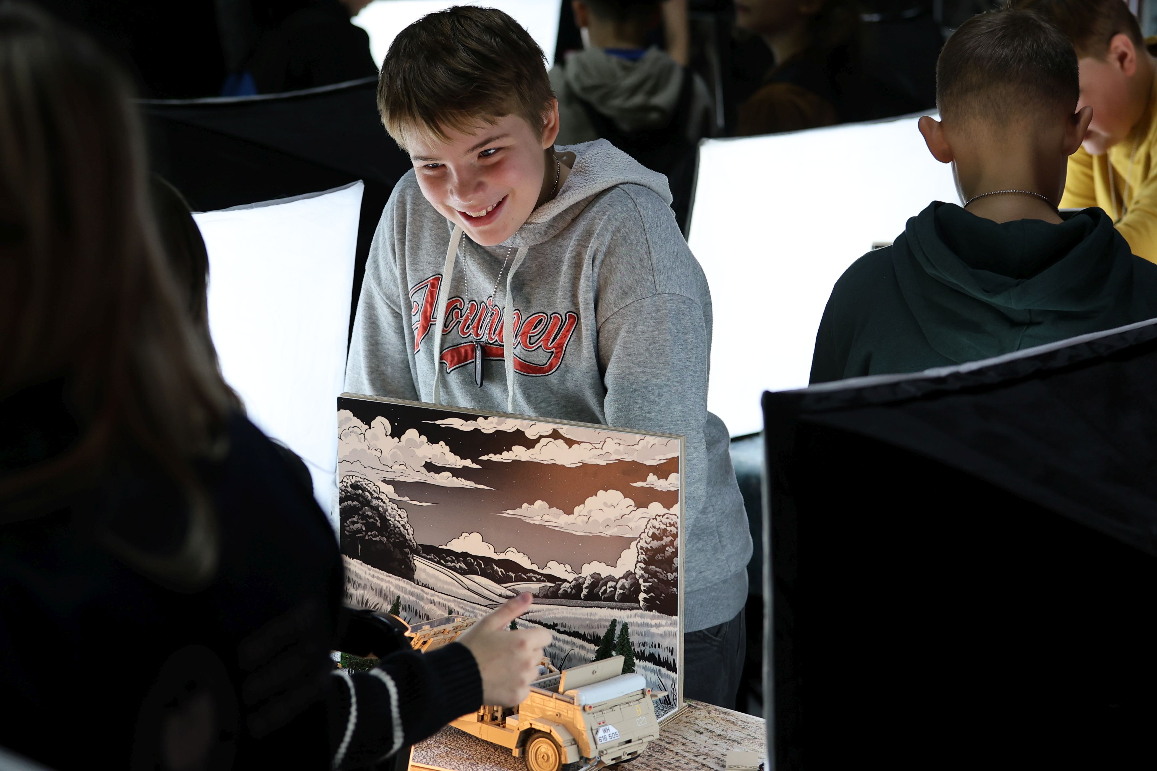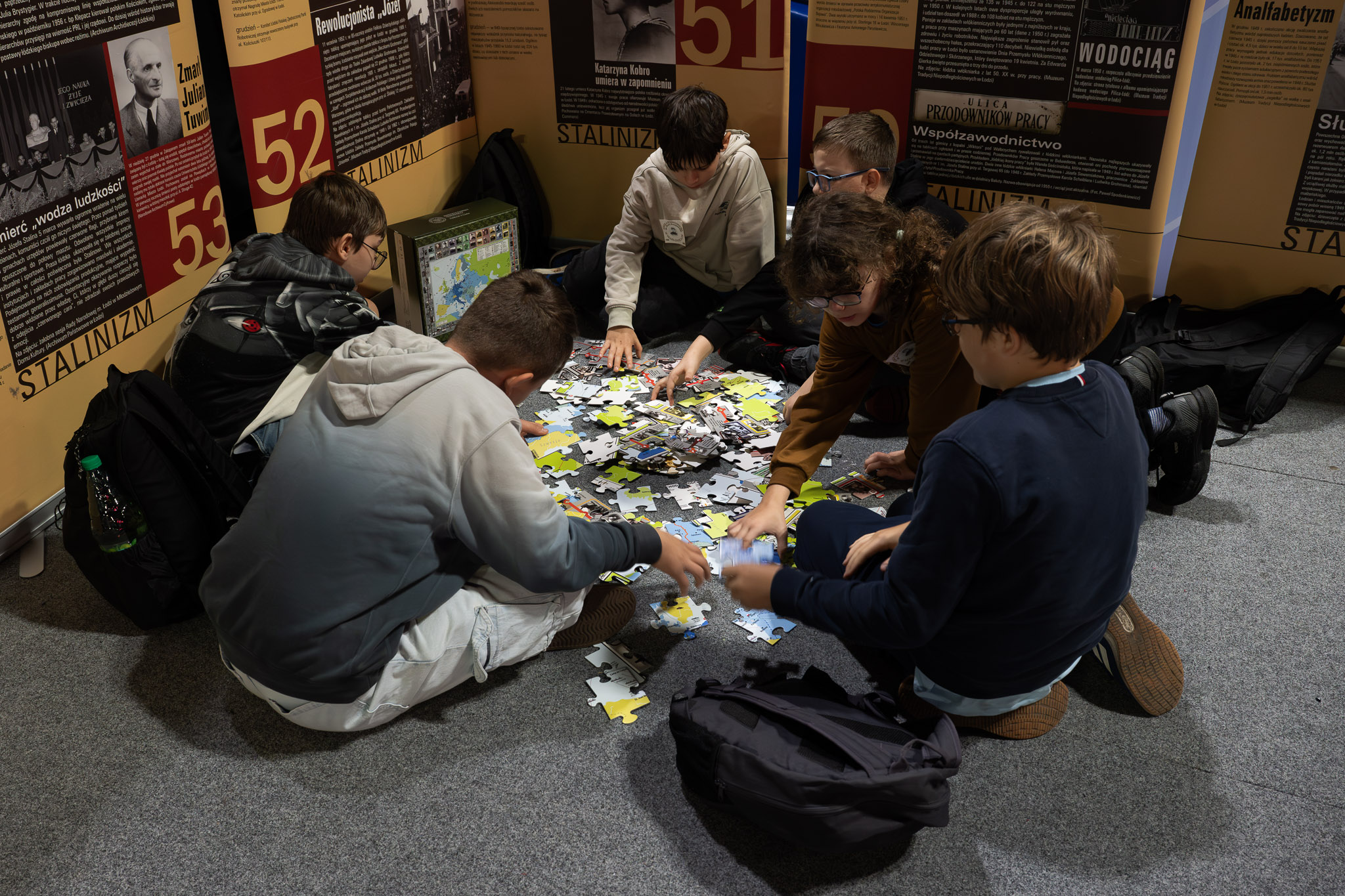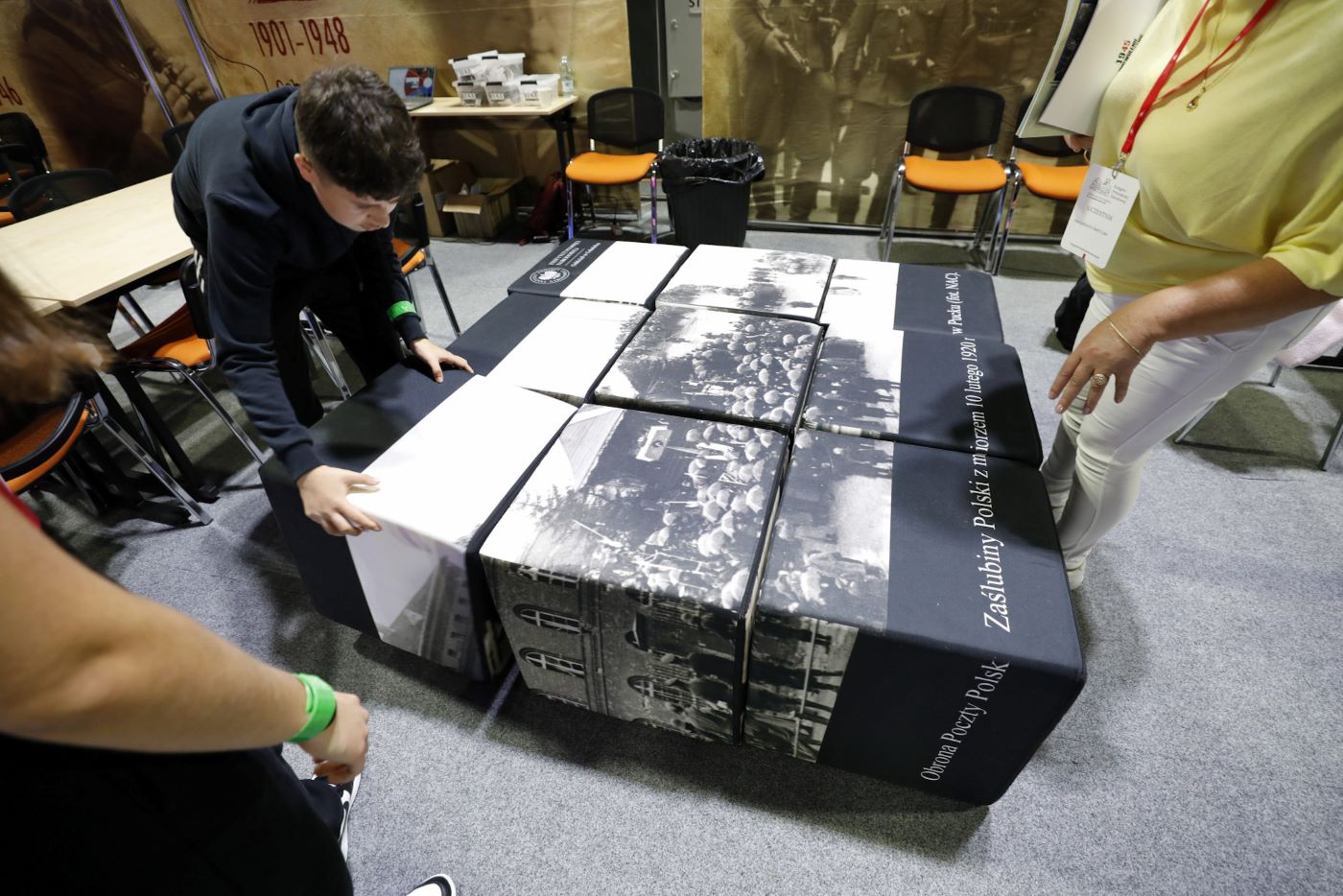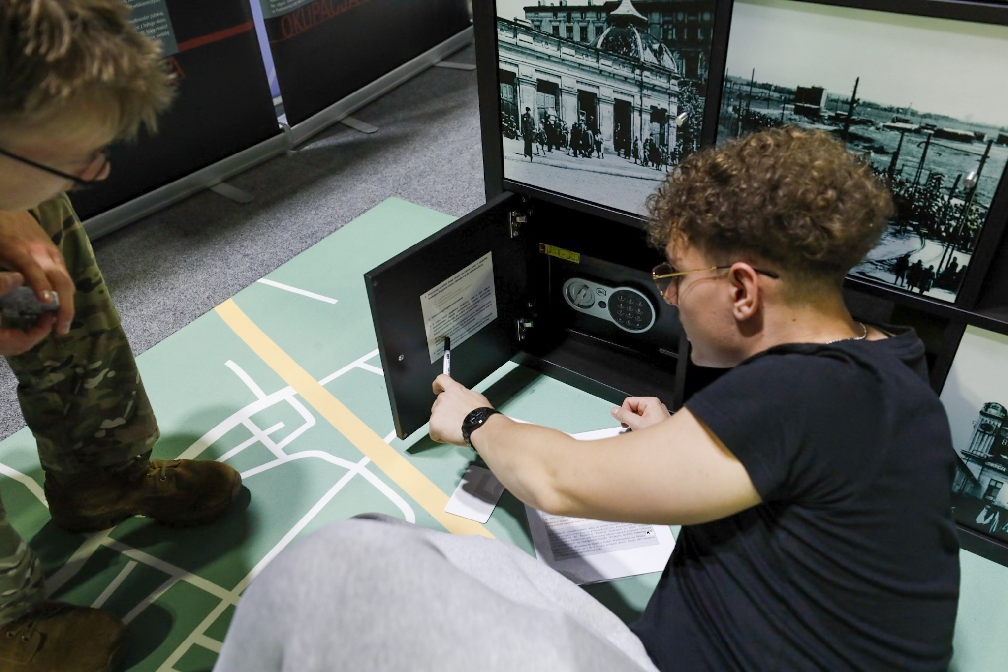 Strefa Upamiętnień – miejsce, gdzie uczestnicy próbują swoich sił w tworzeniu inskrypcji na tablicach pamiątkowych, układają puzzle z wizerunkami pomników i poznają sposoby upamiętniania lokalnych bohaterów.