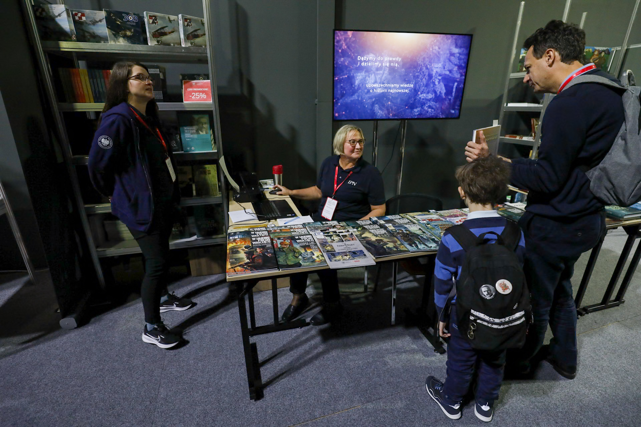 Stoisko Wydawnictwa IPN oferuje albumy, nowości wydawnicze, publikacje łódzkiego oddziału IPN, komiksy dla młodzieży oraz gry edukacyjne, które w przystępny i atrakcyjny sposób przybliżają historię Polski.