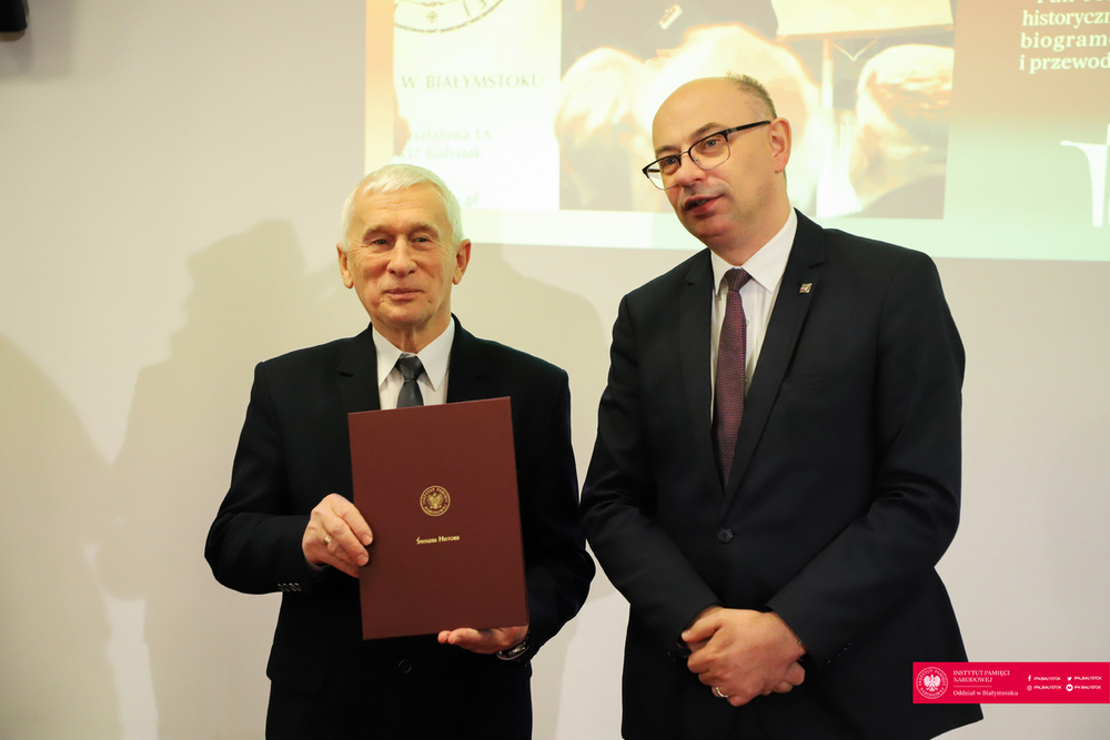 8 grudnia 2023 r. w siedzibie Oddziału Instytutu Pamięci Narodowej w Białymstoku odbyła się uroczystość wręczenia Nagrody Honorowej IPN „Świadek Historii”. Zasłużonym dla upamiętniania historii narodu polskiego oraz wspierającym od lat działania IPN nagrody wręczył dr Mateusz Szpytma, zastępca prezesa Instytutu Pamięci Narodowej.