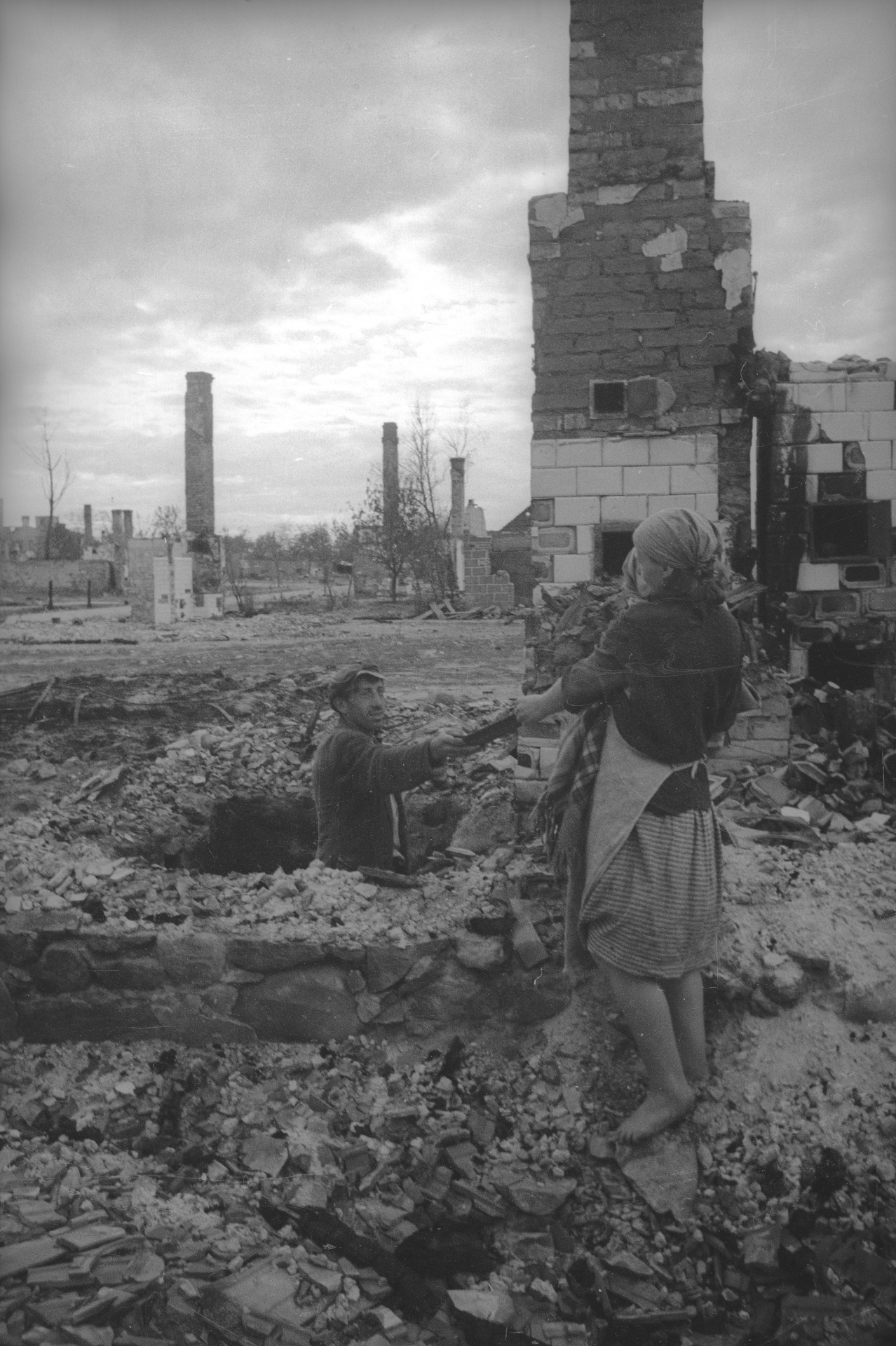 Miejscowość na Warmii lub Mazurach po przejściu armii sowieckiej. Fotografia ze zbiorów Muzeum II Wojny Światowej w Gdańsku -
