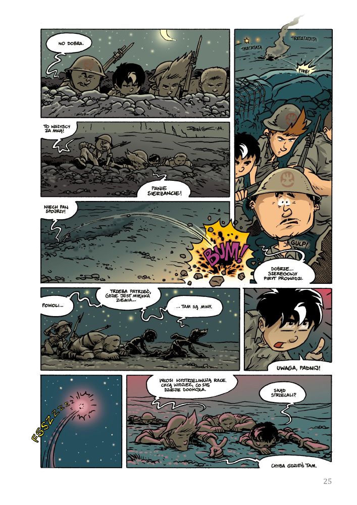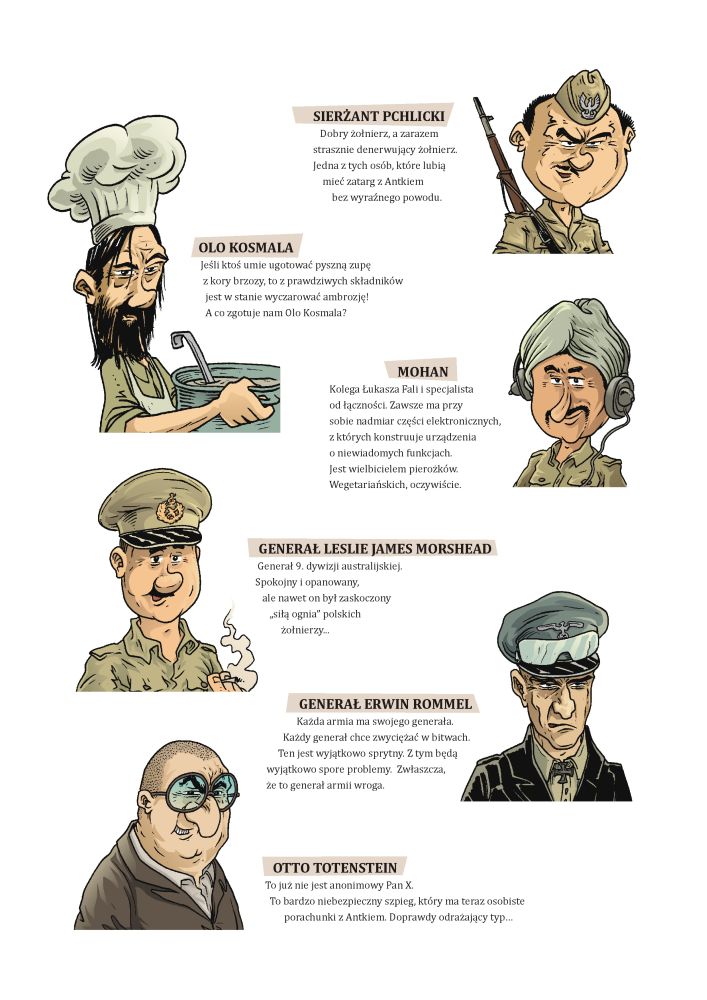 Antek Srebrny dokonał rzeczy niemożliwej. Nie tylko uciekł z obozu w komunistycznej Rosji, ale po wielu tygodniach wyczerpującego marszu dotarł do skrawka wolnej Polski znajdującego się… w Syrii. Tak, to najprawdziwsza prawda – Antek trafił do obozu organizowanej tam Samodzielnej Brygady Strzelców Karpackich. Ostatnie przejścia sprawiły, że zmężniał i wydoroślał ponad swój wiek. Dzięki temu może podać, że jest starszy o dwa lata i przywdziać wreszcie wymarzony polski mundur. Razem z brygadą trafia teraz w samo „oko cyklonu” walk w Afryce Północnej – do twierdzy Tobruk. Czy uda mu się przechytrzyć „Lisa Pustyni”? Co łączy go z agentem niemieckimTotensteinem? Czy Antek zasłuży na miano „szczura Tobruku”? Na wszystkie te pytania znajdziesz odpowiedź w trzecim zeszycie serii „Wojenna odyseja Antka Srebrnego 1939–1944” – Szczury Tobruku 1941 r.