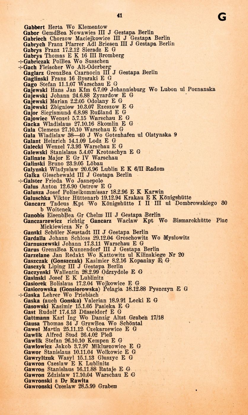 Publikacja stanowi reprint oryginalnej niemieckiej listy proskrypcyjnej z początku 1940 r., zawierającej nazwiska osób z terenu Polski przeznaczonych do natychmiastowego aresztowania. Reprint przygotowany na podstawie egzemplarza z zasobu Oddziałowego Archiwum IPN w Katowicach (sygn. IPN Ka 32/899) z uzupełnieniami z egzemplarza z zasobu Biblioteki Śląskiej w Katowicach (sygn. II 849588), opatrzony krytycznym wstępem dr. hab. Grzegorz Bębnika.