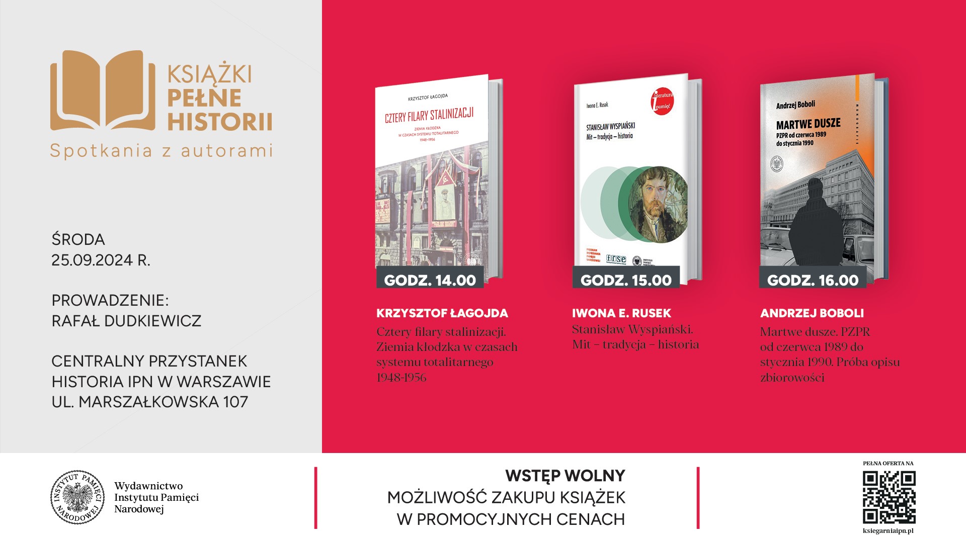 Rozmowy prowadzi redaktor Rafał Dudkiewicz. Wstęp wolny.