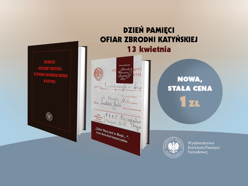 W związku z Dniem Pamięci Ofiar Zbrodni Katyńskiej, aby przybliżyć zagadnienia minionych wydarzeń oraz umożliwić czytelnikom zapoznanie się z publikacjami wydanymi nakładem Wydawnictwa IPN przygotowaliśmy „nową stałą cenę 1 zł” dla wybranych publikacji: