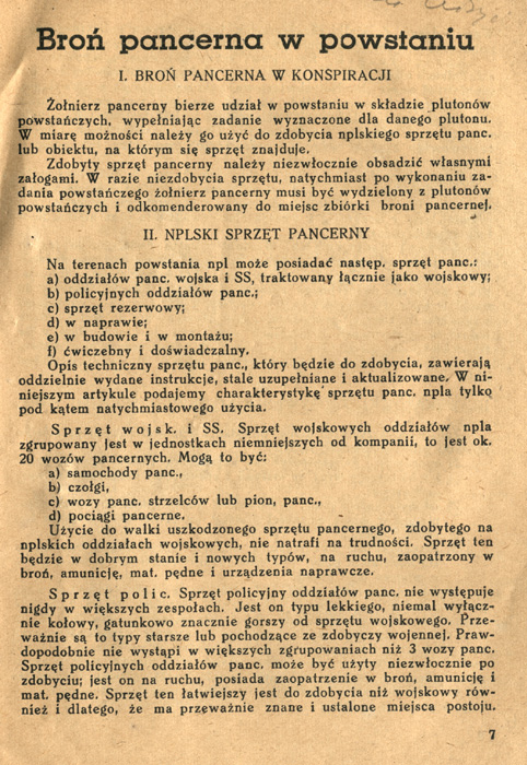Instrukcja użycia broni pancernej w walkach powstańczych, ze zb. Marka Ney-Krwawicza