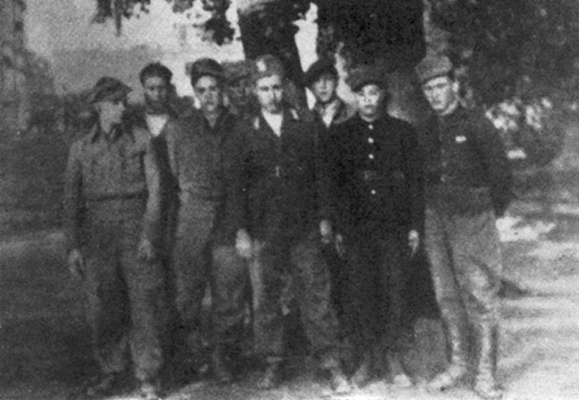 Grupa rozbrojonych żołnierzy batalionu zbiorczego 27. Wołyńskiej Dywizji Piechoty AK, Szczebrzeszyn, lipiec 1944, ze zb. Światowego Związku Żołnierzy Armii Krajowej Okręg Wołyń