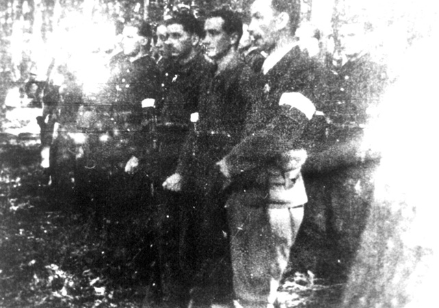 Pogrzeb Józefa Lutaka „Dyzma”, w pierwszym rzędzie od prawej stoją Leon Kloc „Jasny”, Wiesław Bodzeński „Goniec”, NN, Kazimierz Kemmer „Halny”, w drugim rzędzie Mieczysław Kwiatkowski „Żegota” (drugi z prawej), ze zb. Andrzeja Zagórskiego