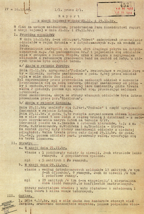 Raport o przeprowadzonej przez Niemców pacyfikacji rejonu Kotonia,