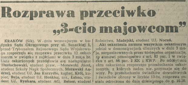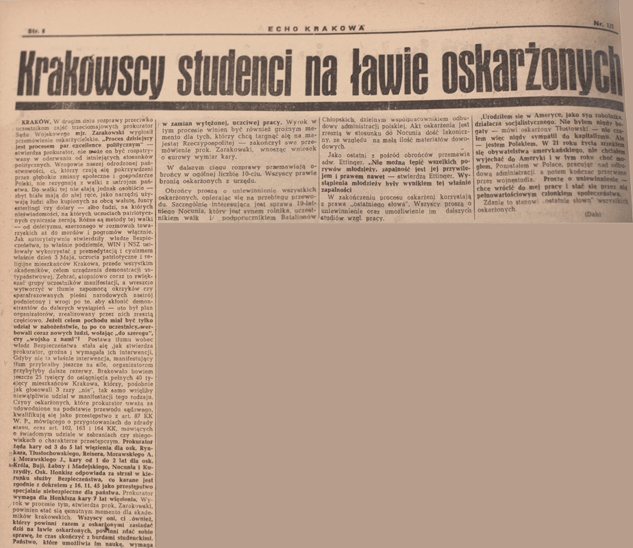 Artykuł w „Echu Krakowa” informujący o przebiegu procesu, „Echo Krakowa”, 9 lipca 1946 r.