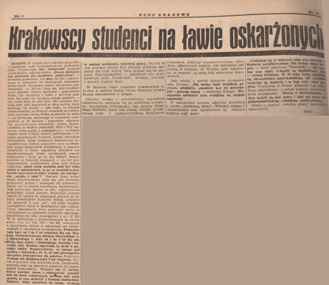 Artykuł w „Echu Krakowa” informujący o przebiegu procesu, „Echo Krakowa”, 10 lipca 1946 r.