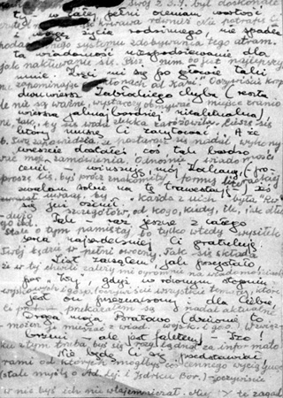Dla skutecznego kamuflażu właściwą treść listów wpisywano pomiędzy wierszami zwykłego listu „atramentem sympatycznym” – nazywanym też „tajnopisem”. Fotografia przedstawia fragment listu Jana Szpondera do Edwarda Chachlicy napisanego 25 września 1952 r. i nadesłanego na adres matki