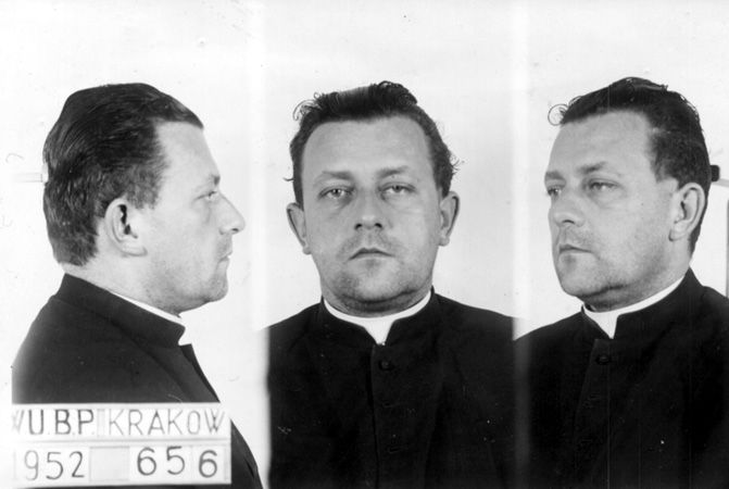 Ks. Rudolf Schmidt (1915–1973), kapłan Archidiecezji Krakowskiej, w latach 1947–1951 kapelan i sekretarz kard. Adama Stefana Sapiehy. Fotografia wykonana w WUBP w Krakowie 27 grudnia 1952 r.